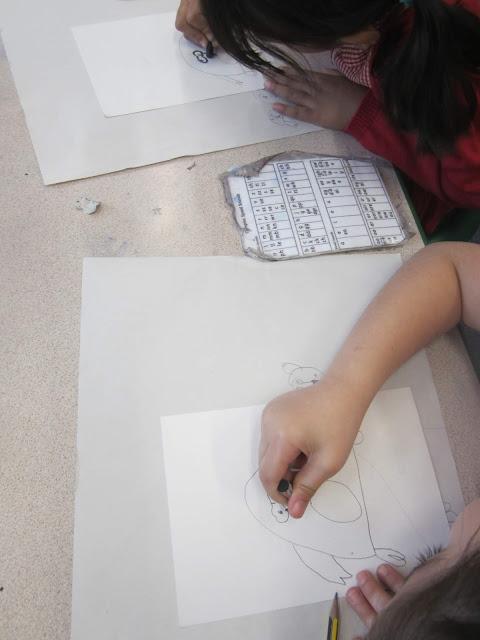 For our warm-up, we practised drawing simple cartoon polar bears and penguins, trying to overlap them, having some in front and some behind.