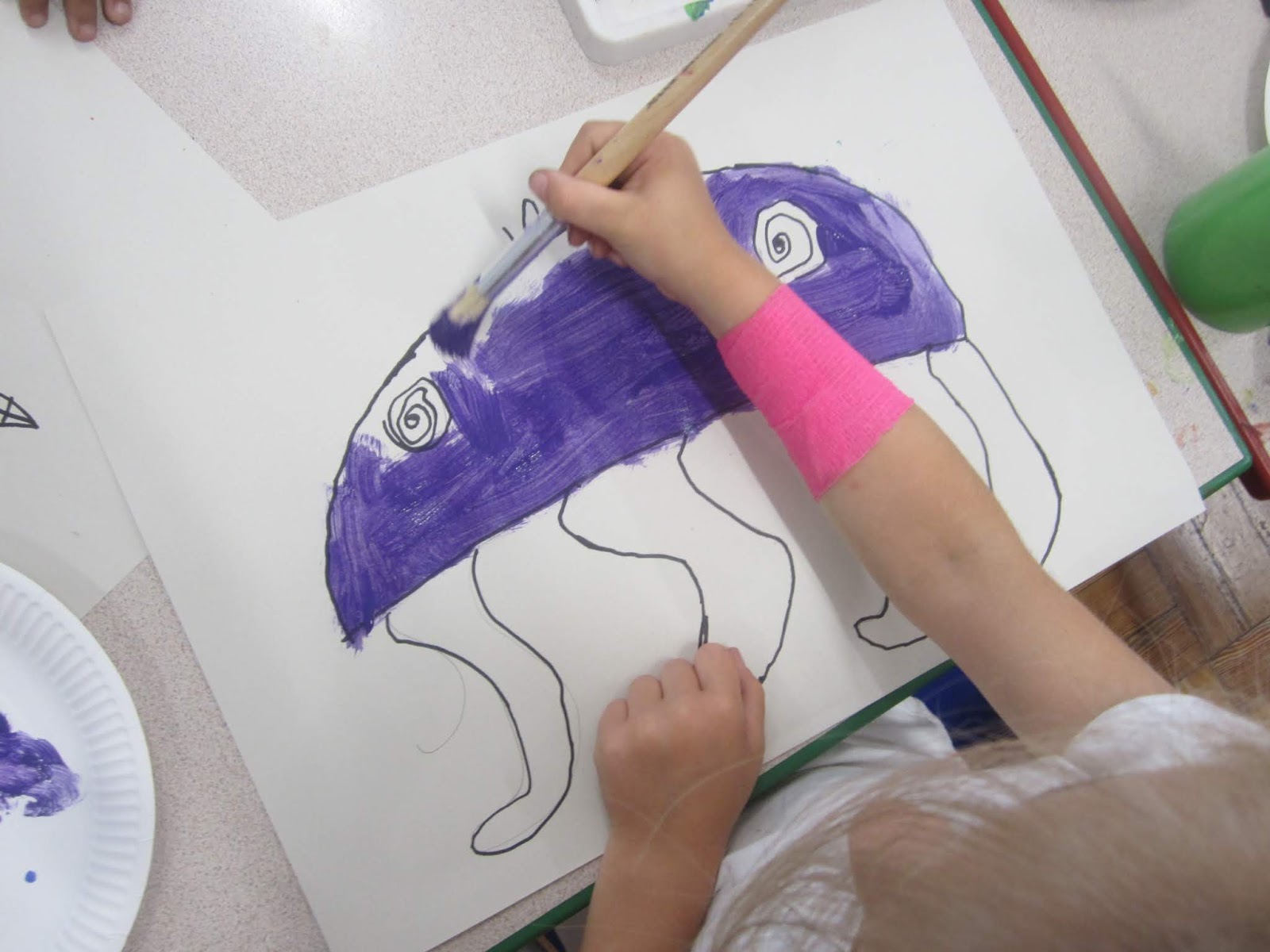 The following week, after all our pictures were dry and we had gone over our Sharpie lines so they stood out again, we added some extra bits to our creatures.