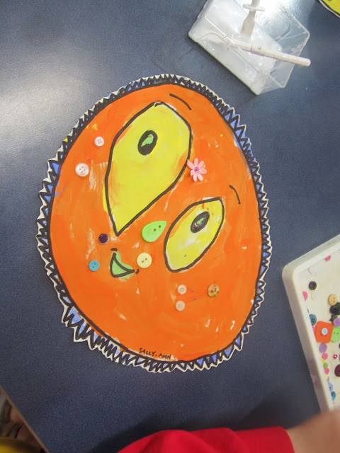 A couple of weeks ago, Year 1 started their final big picture - a cartoon sea creature of their choice, which they would go on to draw, paint and add some collage bits to.