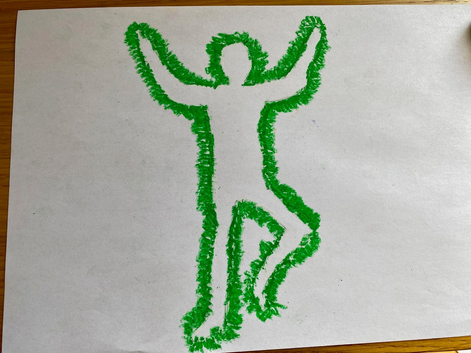 Now find some colouring pencils, felt pens or oil pastels and outline each of your figures. Take your time as lines may be difficult to see. You could do it as you went along if that's easier.